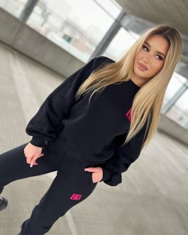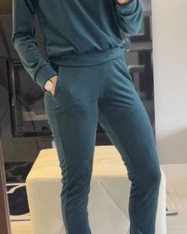 DRES WELUROWY CZARNY VELSATINO polskiej marki. Bluza z kapturem, posiada wyszywane logo z przodu. Spodnie w pasie są na gumce. Materiał jest grubszy, nieprześwitujący.